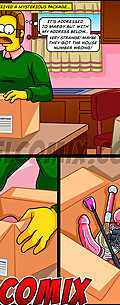 He opens the package and finds various sadomasochistic factors - Slay rub elbows with Simptoons, Sadomasochistic Package by welcomix (tufos)!